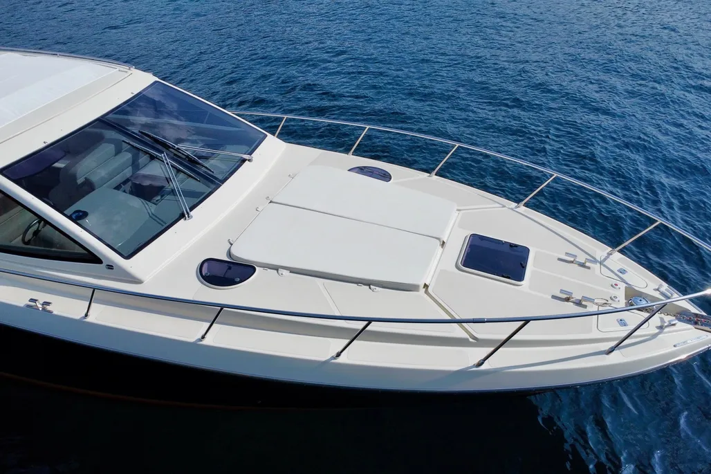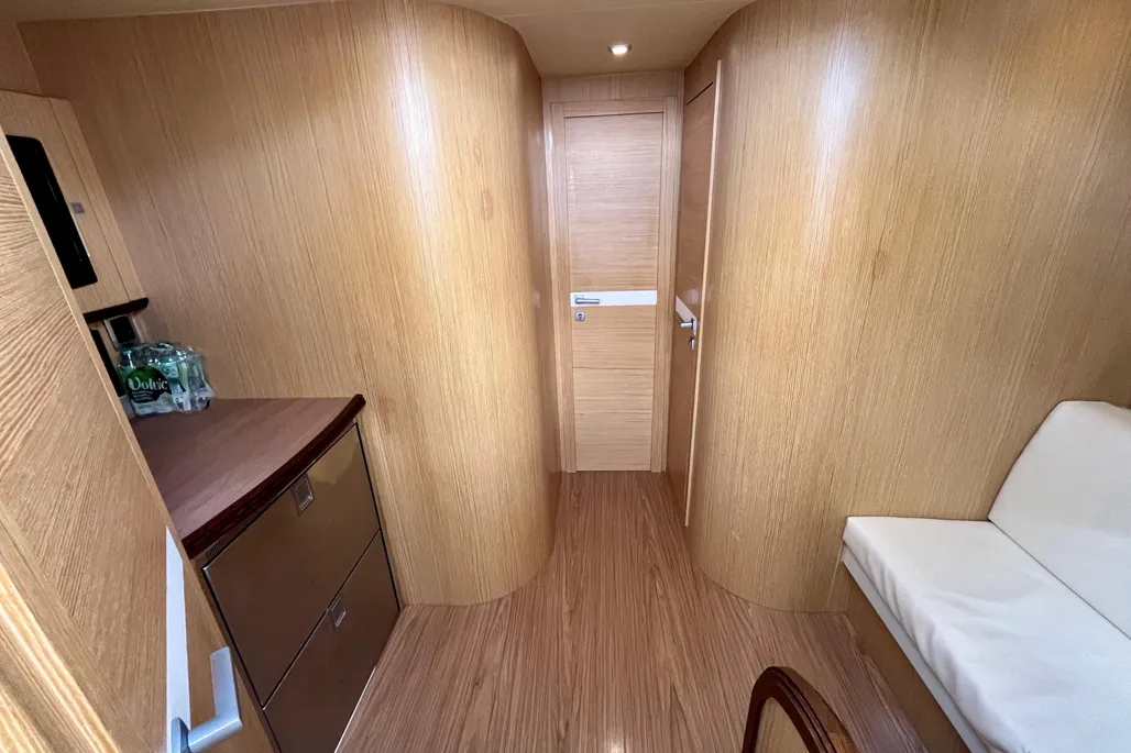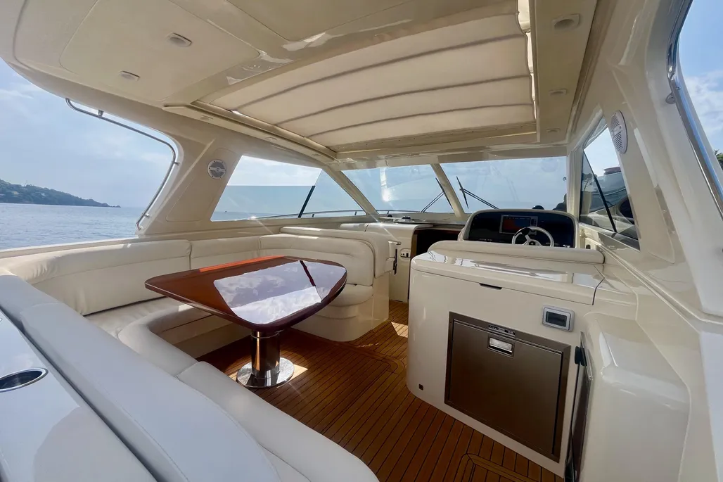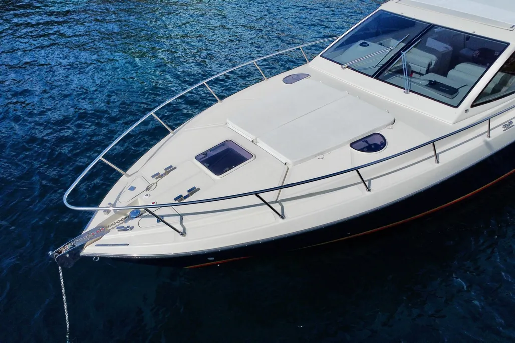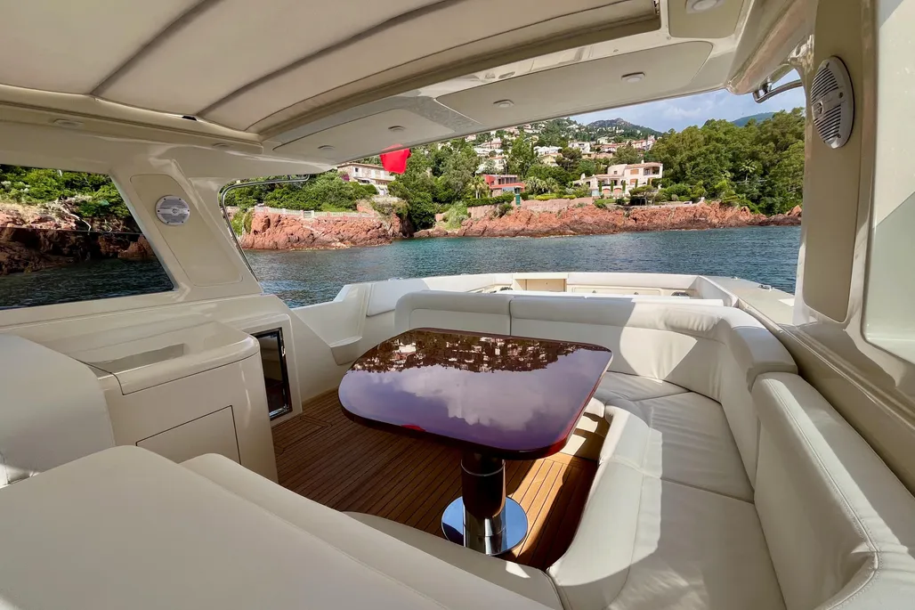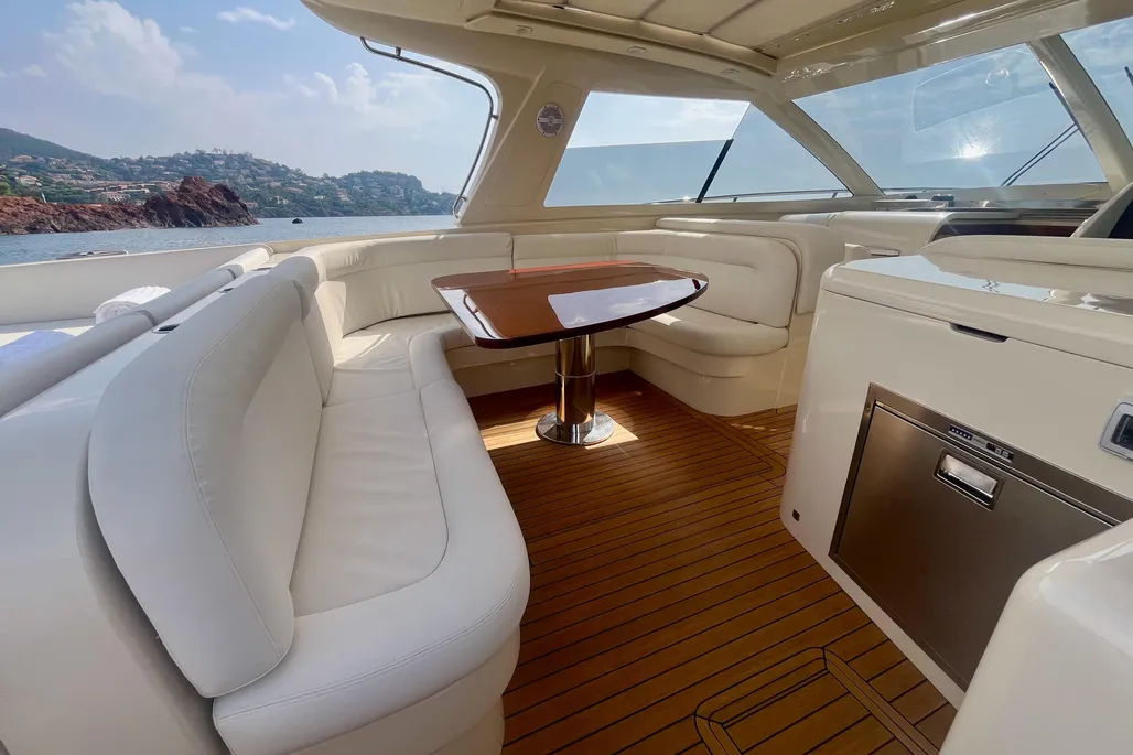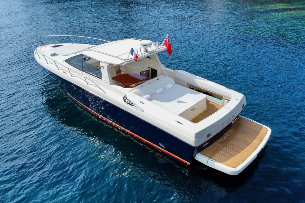 Powered by two 800 hp MANs (approx. 1285 hours), it offers smooth, safe sailing, with performance suited to both fast outings and days at anchor. On board, the spacious cockpit, elegant hard-top and wide aft platform create a convivial outdoor living space, perfectly designed for entertaining.