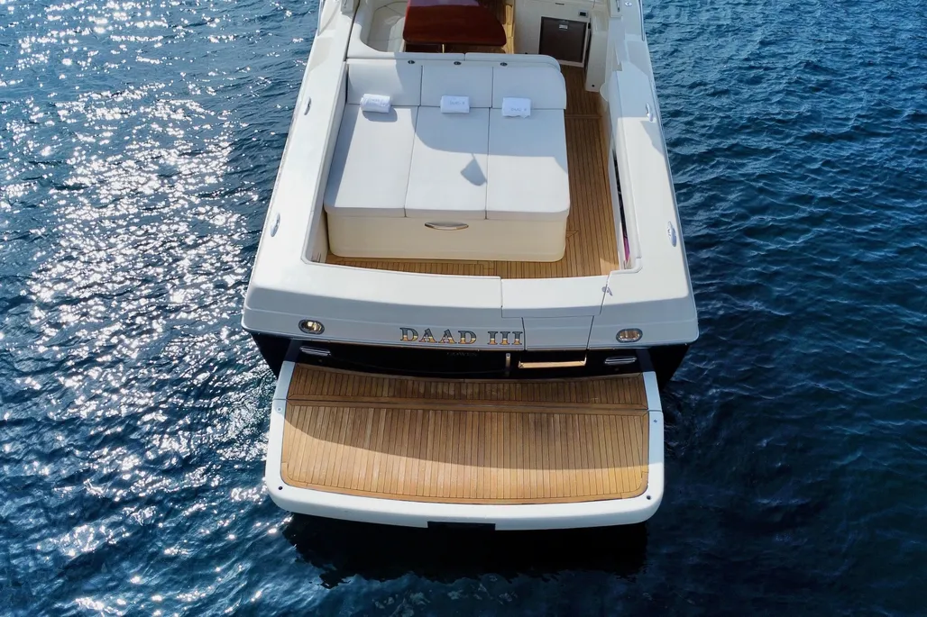 Because it combines iconic design with solid performance thanks to MAN 2 x 800 hp, and on-board comfort designed for entertaining. A true top-of-the-range day-boat, as elegant in port as it is efficient at sea.