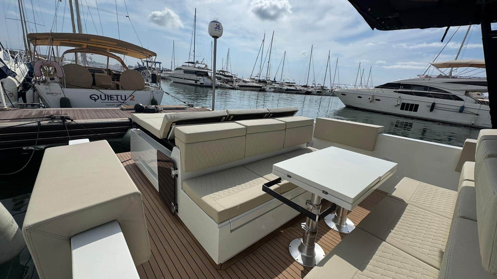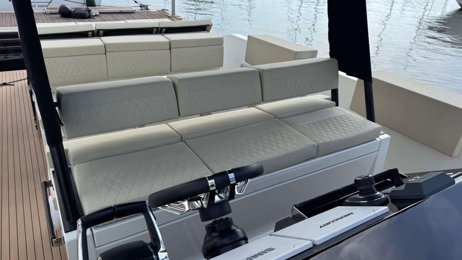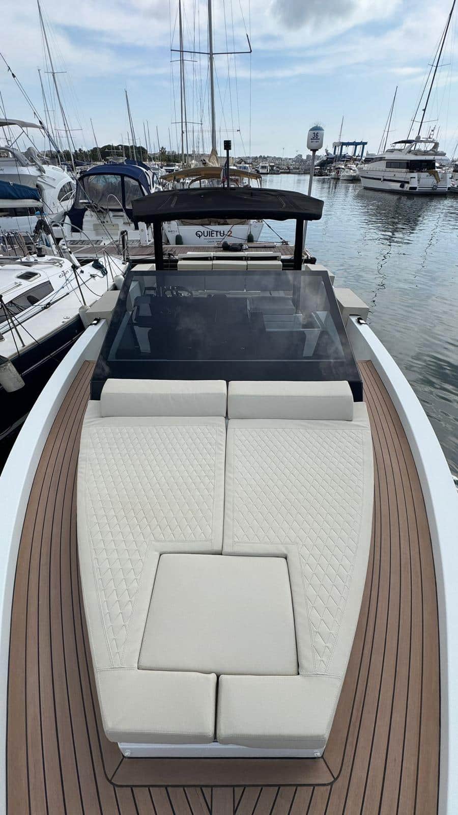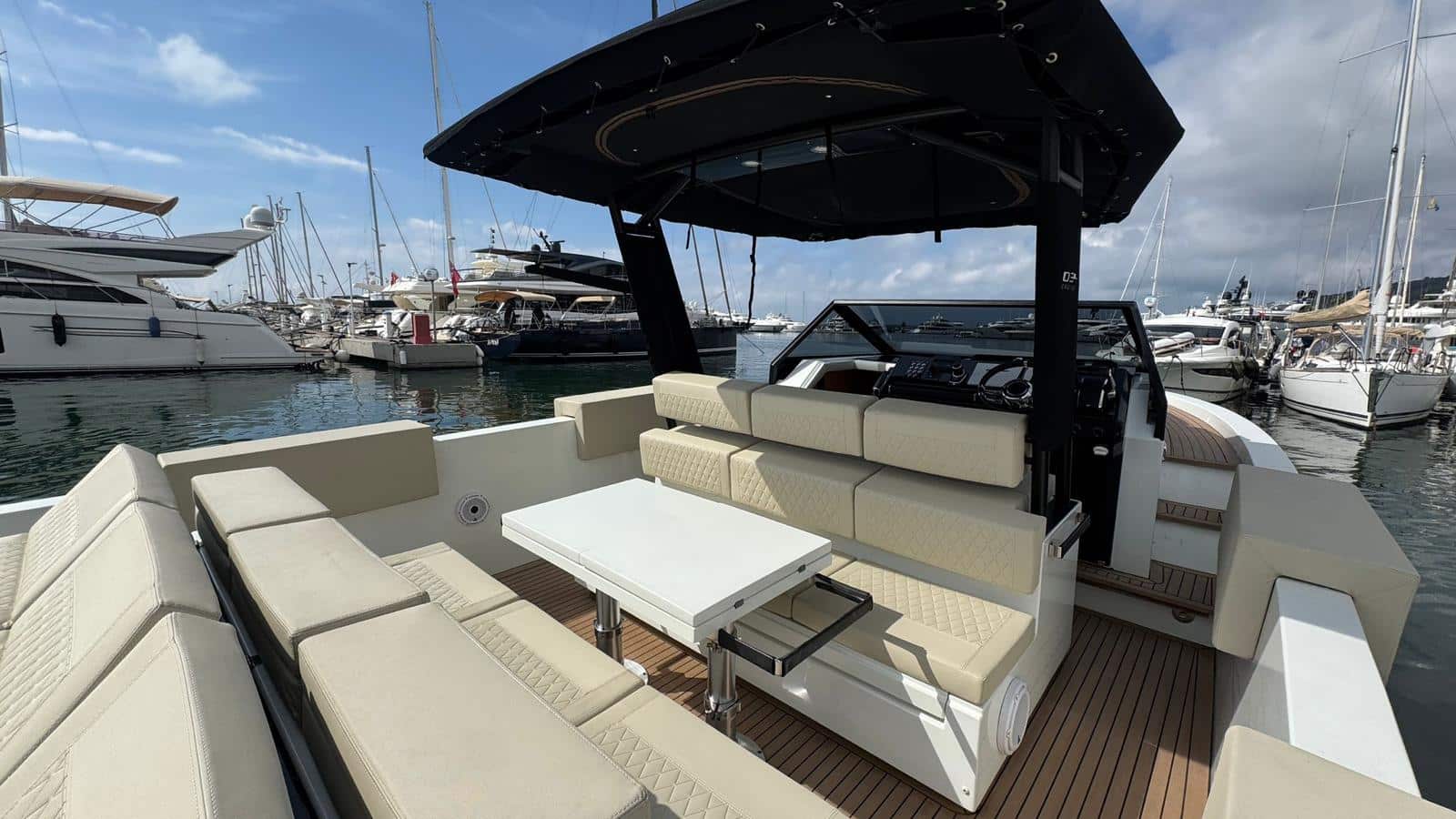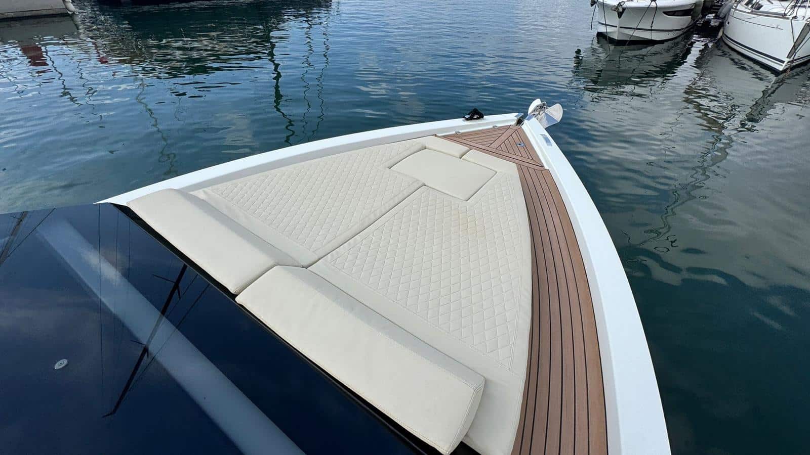 Le De Antonio D34 se distingue par ses moteurs dissimulés sous le bain de soleil arrière, offrant une ligne épurée tout en garantissant des performances solides. La maniabilité et la stabilité sont au rendez-vous, même à rythme soutenu.