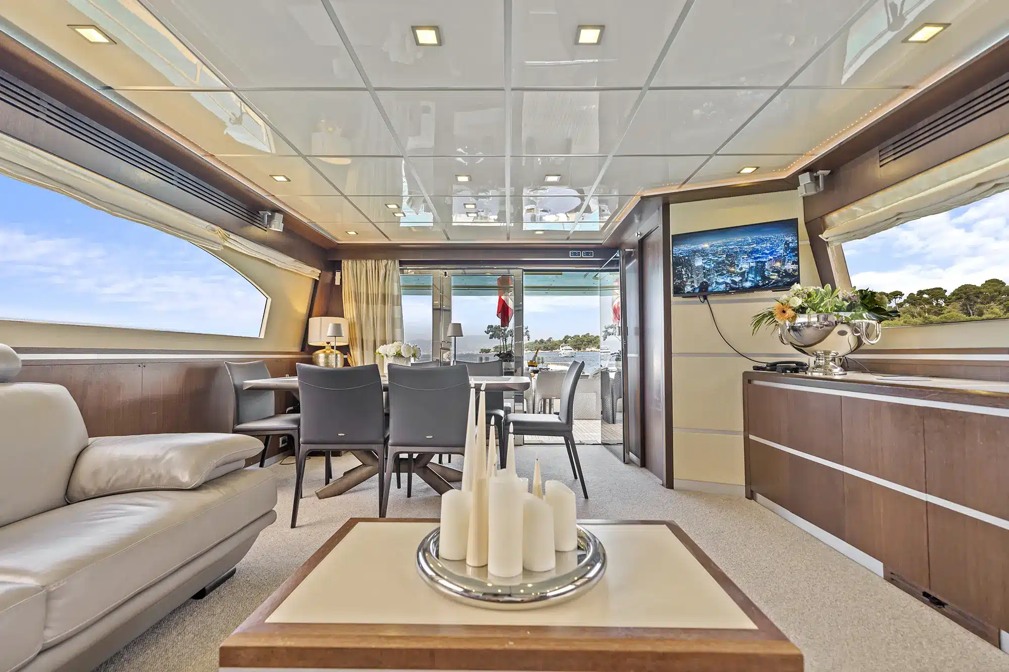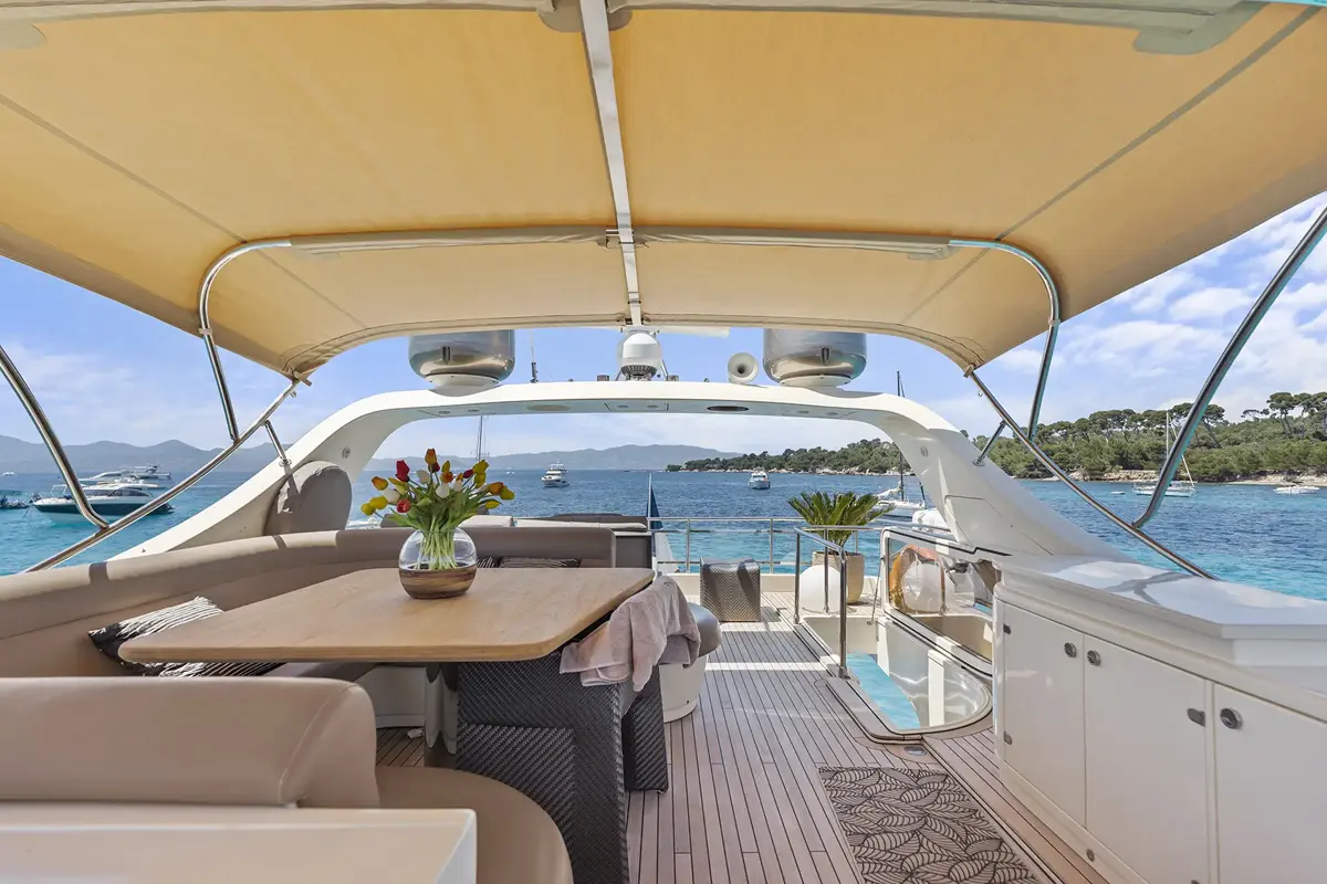 Sa configuration en 4 cabines permet également d’accueillir jusqu’à 8 invités pour la nuit, offrant une grande flexibilité pour prolonger l’expérience sur la Côte d’Azur.
