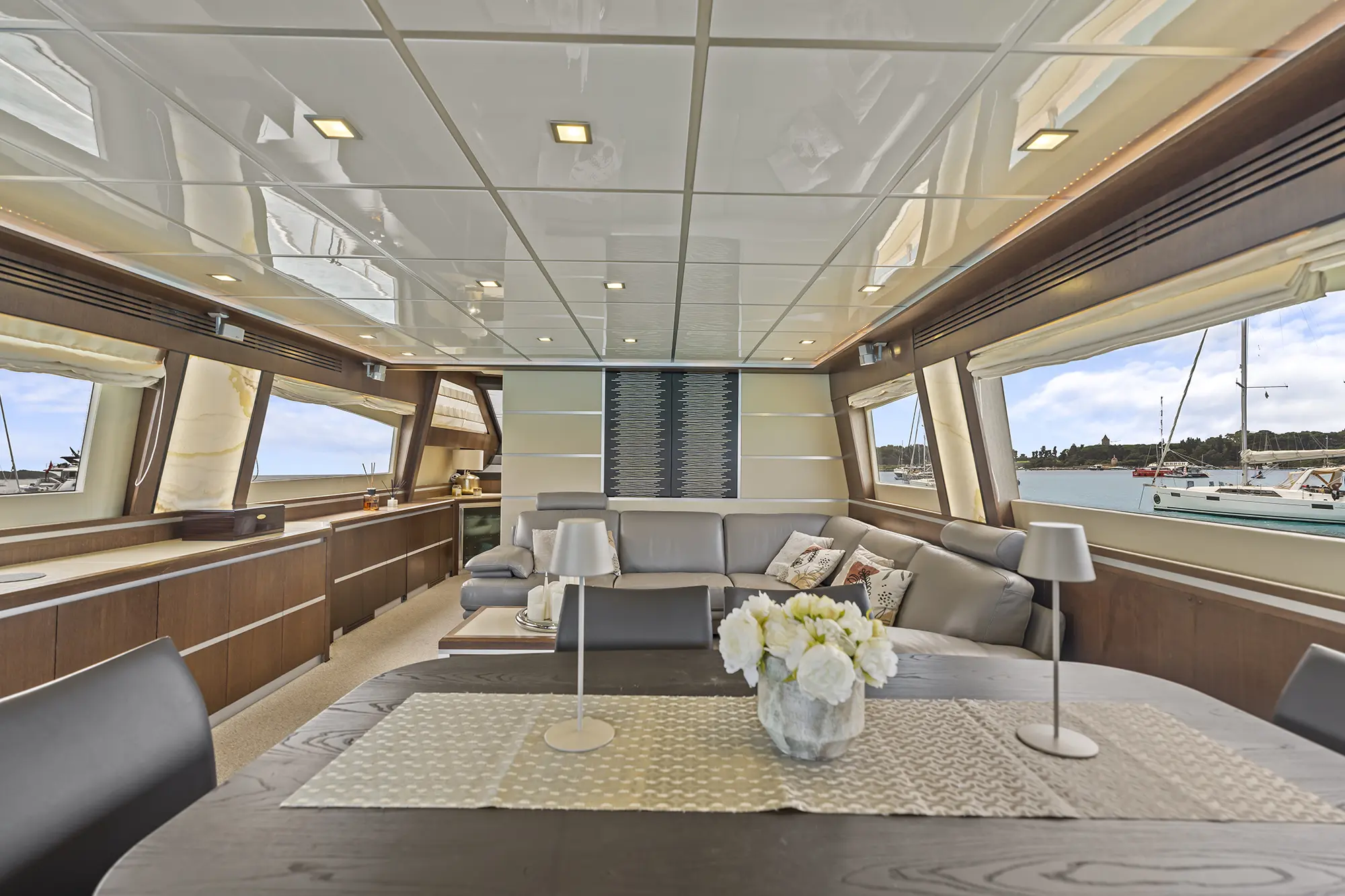 Le Leonard 74 propose un cockpit spacieux avec un grand espace repas, complété par des bains de soleil à l’avant. L’agencement favorise une circulation fluide et une vraie convivialité à bord, créant une atmosphère proche d’une “maison sur l’eau”.