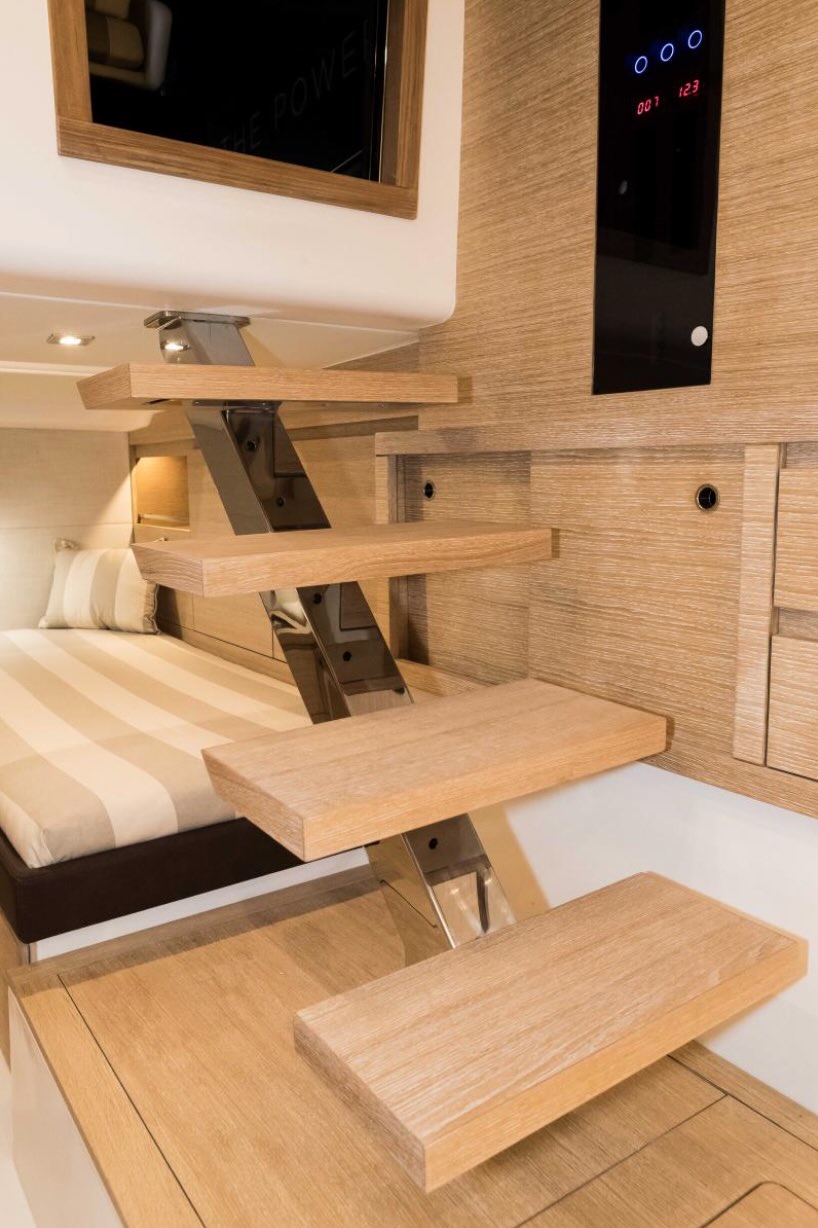 Propulsé par deux moteurs Volvo 2 × 500, le Pardo 43 offre une navigation souple et dynamique avec une vitesse de croisière d’environ 25 nœuds.