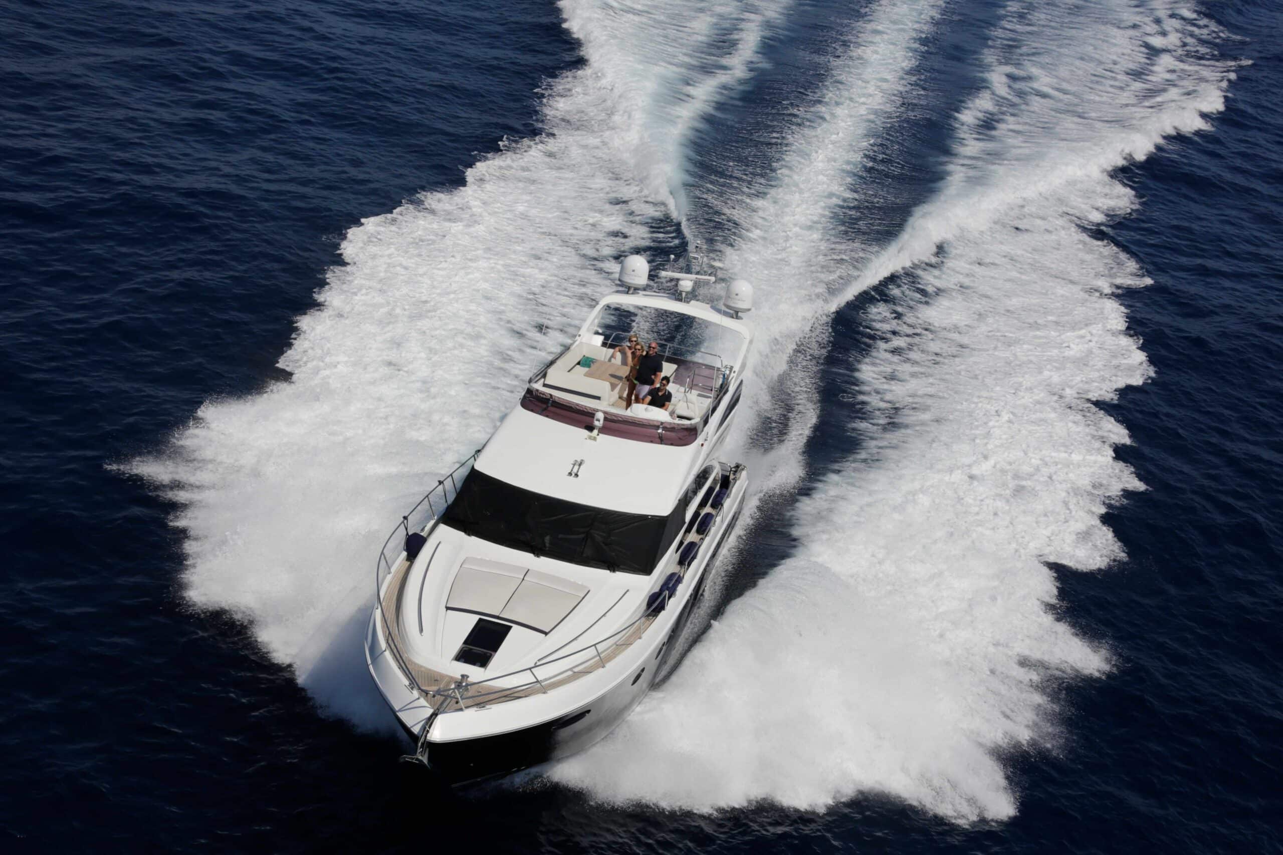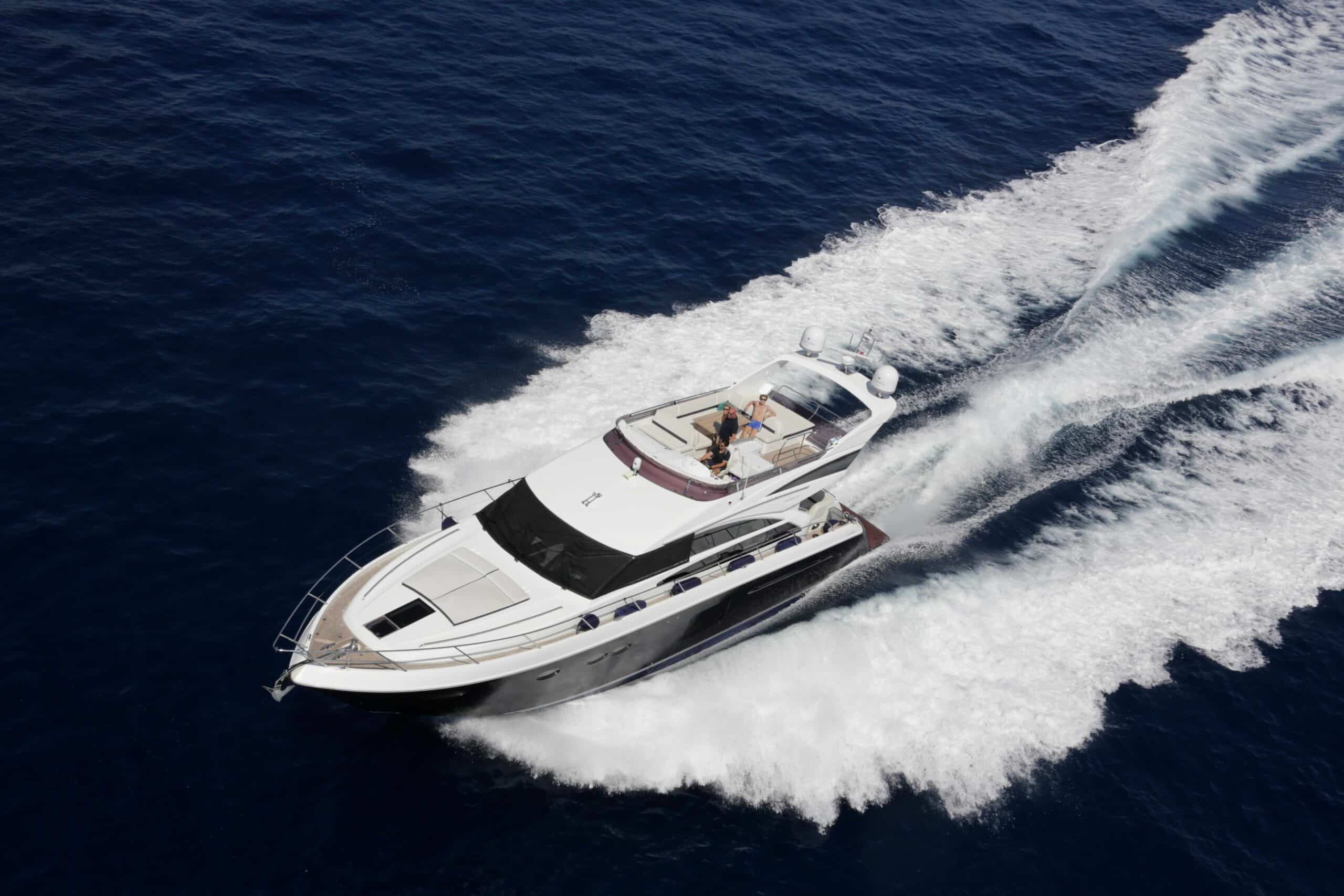 Le Princess 64 fait partie des yachts les plus recherchés pour une journée en mer confortable et élégante sur la Côte d’Azur.