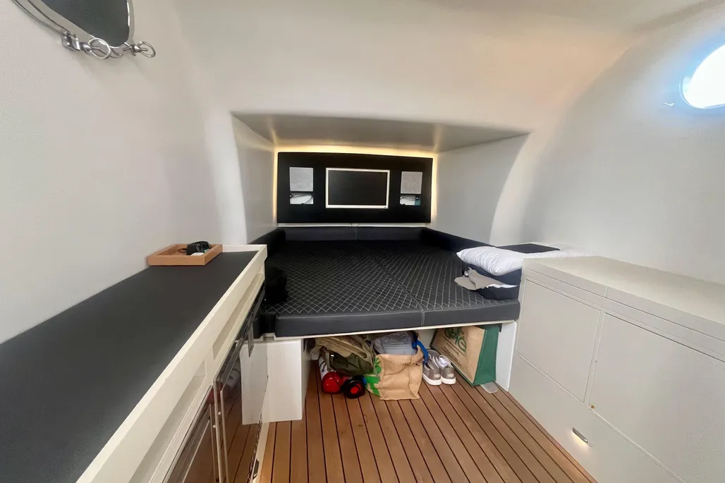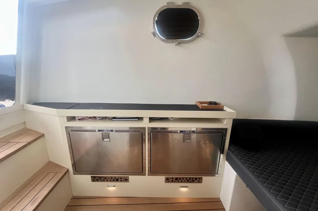 Propulsé par deux moteurs Yanmar 370 cv neufs (55 heures seulement), accompagnés de nouveaux supports et platines, Nasty garantit performances, fiabilité et confort de navigation. L’ensemble du bateau a bénéficié d’une remise à niveau complète : générateur neuf, câblage électrique refait, peinture récente et climatisation réversible pour une utilisation toutes saisons.