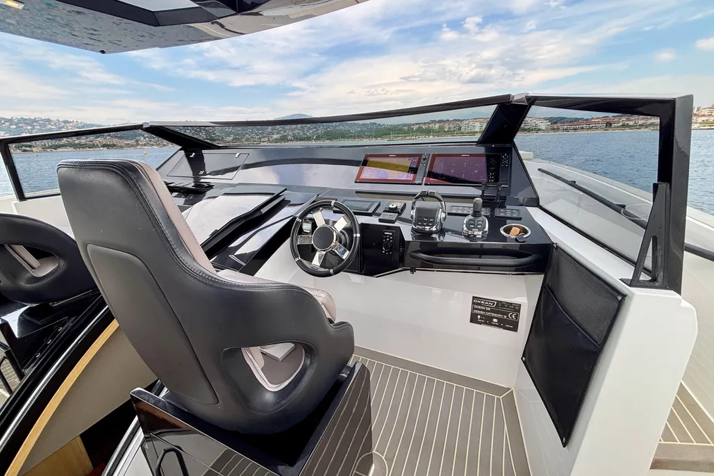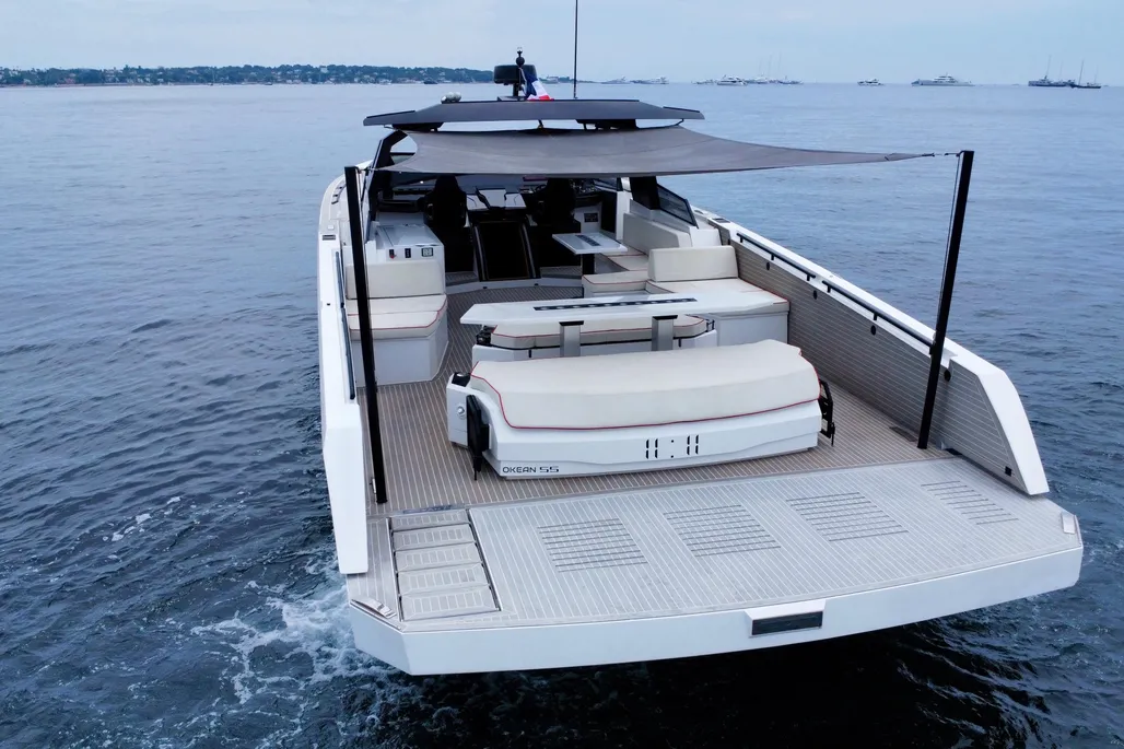 Le Okean 55 représente une opportunité rare : première main, design innovant, volumes exceptionnels et un niveau d’équipement premium. Sa configuration tournée vers l’extérieur et son confort de navigation en font un bateau particulièrement recherché sur le segment des grands day boats, avec un potentiel de valorisation fort sur le marché méditerranéen.
