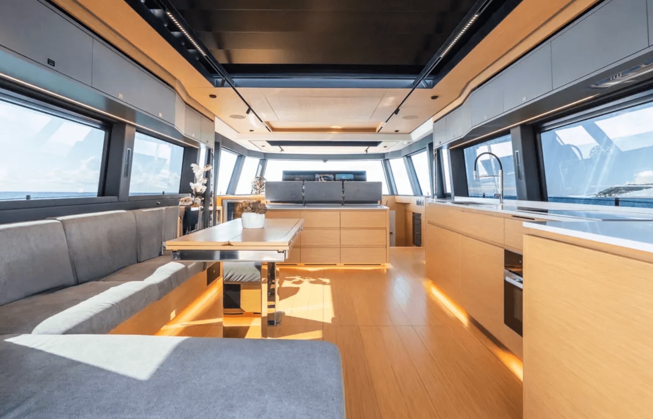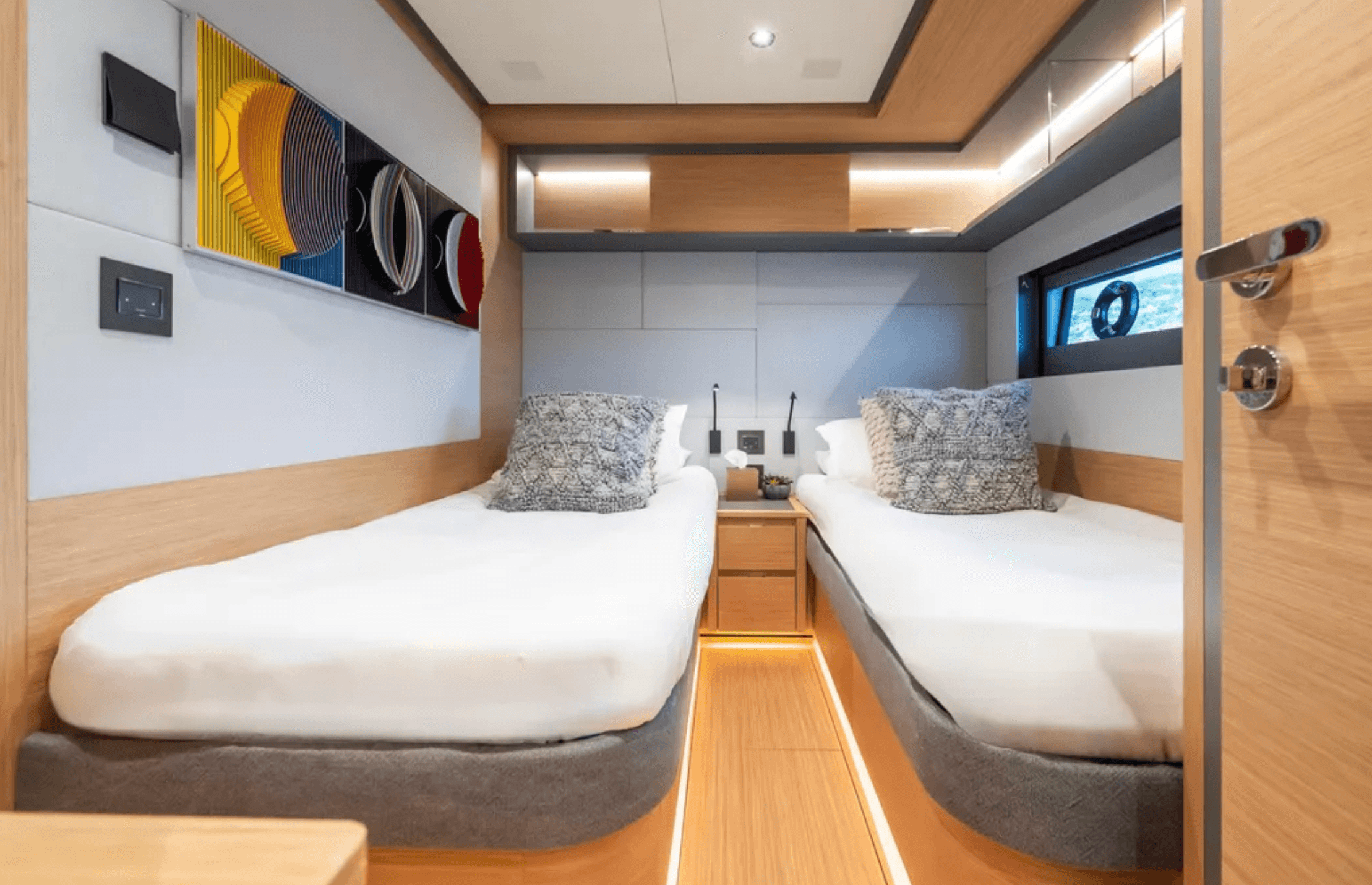 Sa configuration en quatre cabines, rare dans cette catégorie, permet un confort remarquable pour des croisières prolongées, tout en conservant l’ADN sportif et épuré propre à Pardo Yachts.