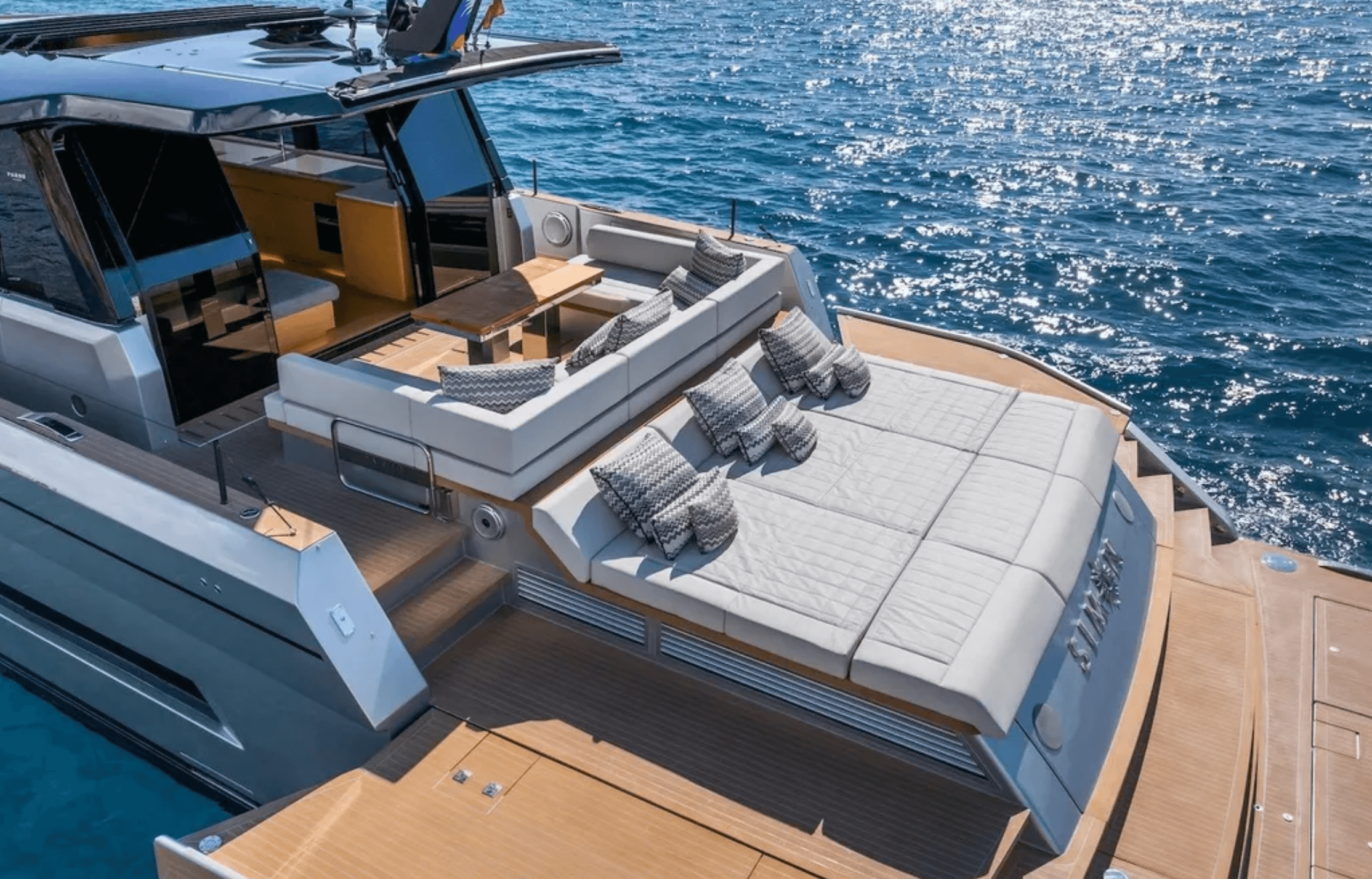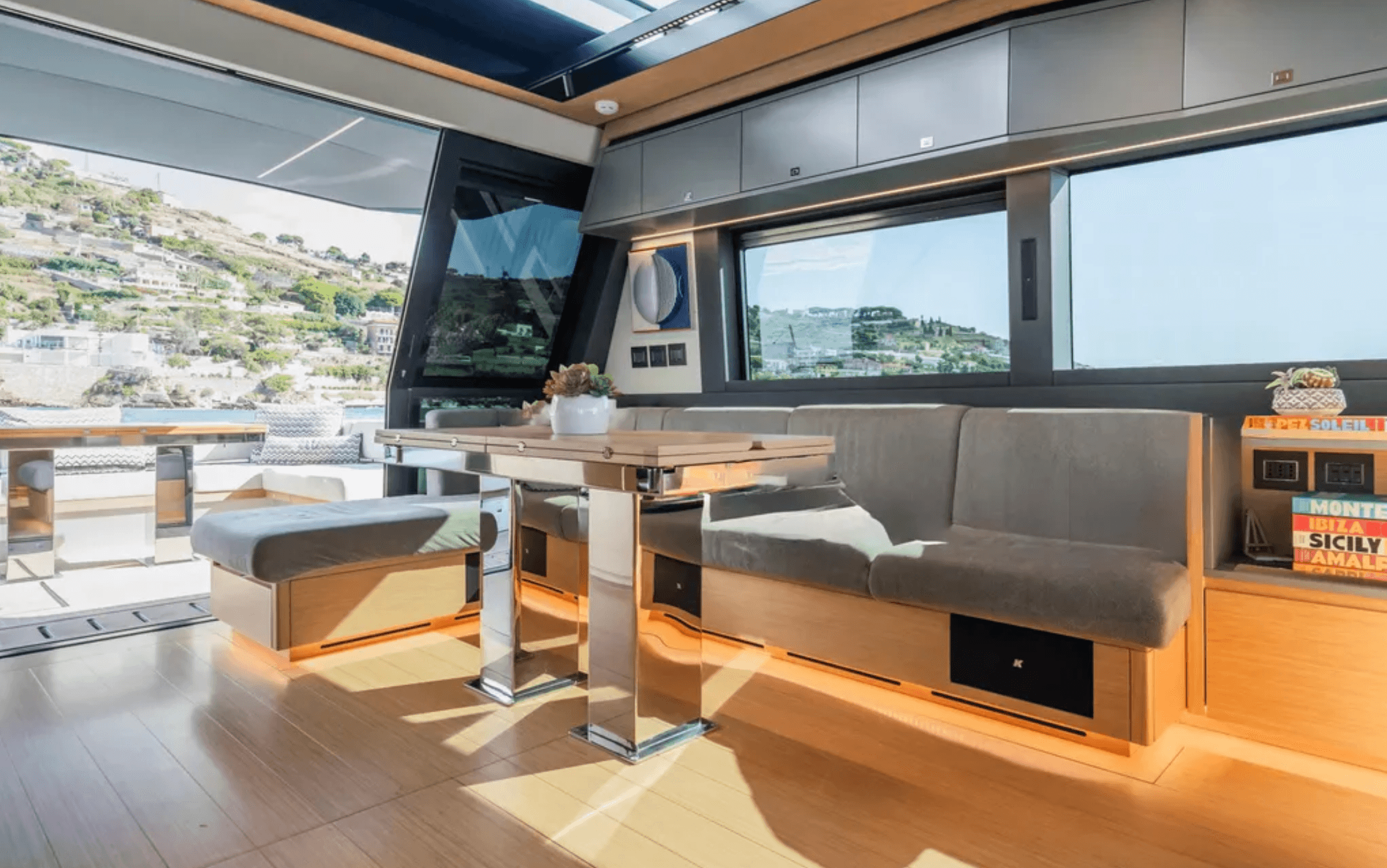 Les vastes espaces de pont, les terrasses latérales électriques et les zones de détente modulables font du GT75 une plateforme idéale pour naviguer en Méditerranée dans un cadre à la fois performant et raffiné.