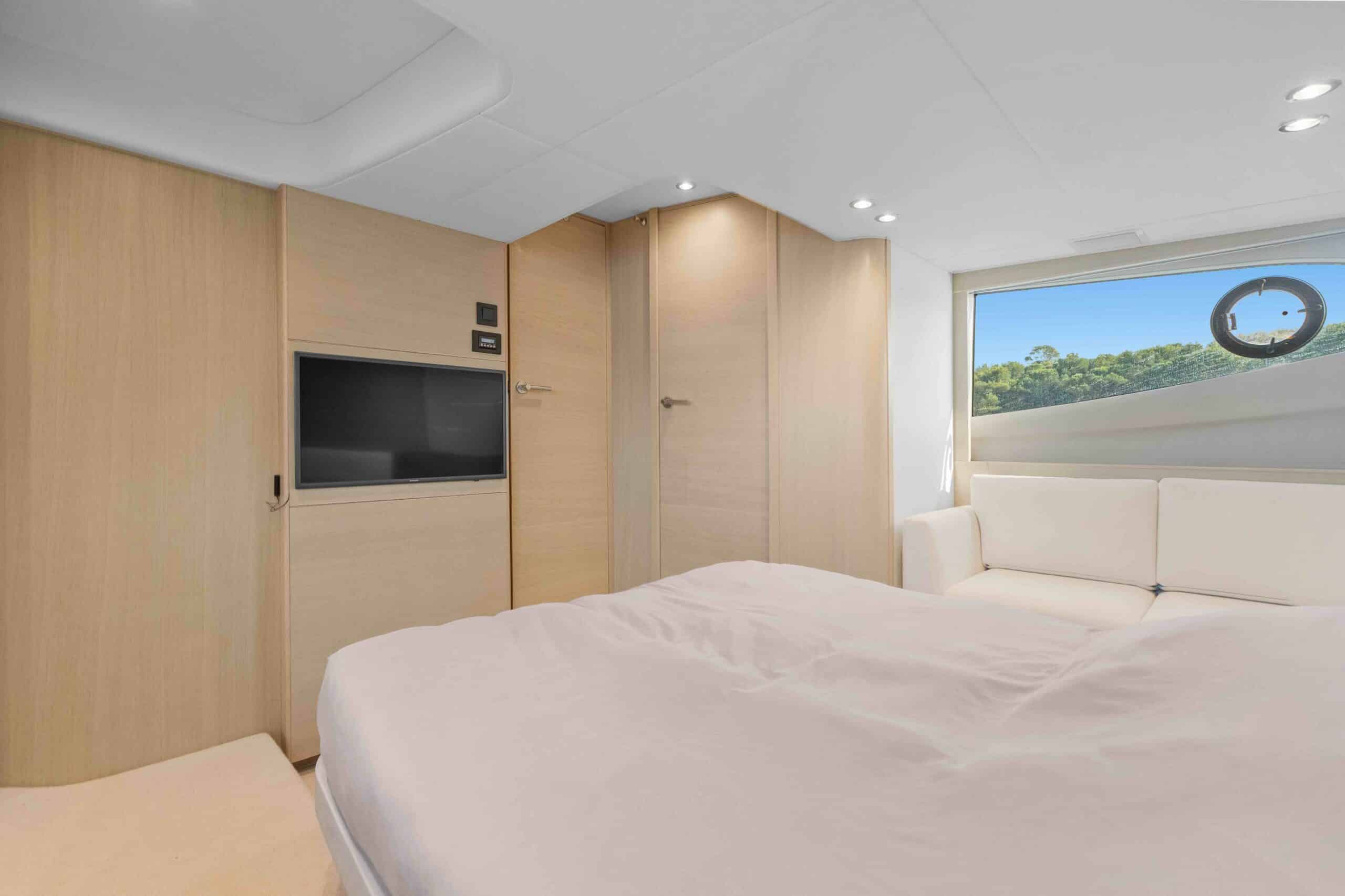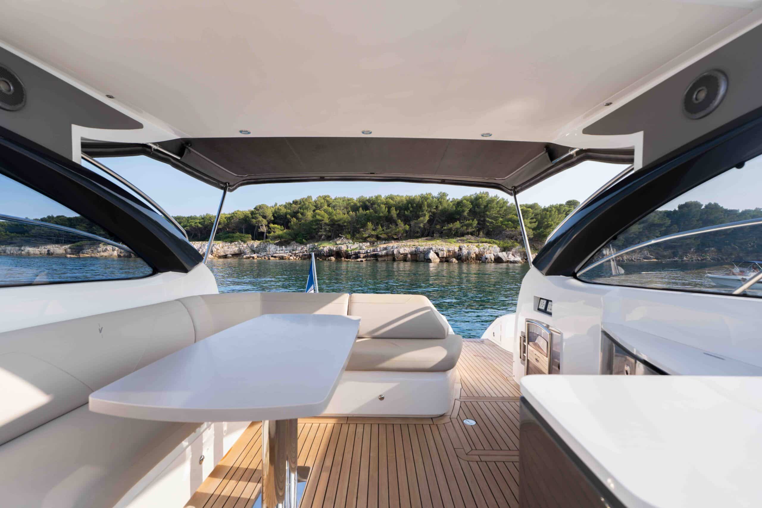 Grâce à sa motorisation Volvo IPS 600, son stabilisateur Seakeeper et son plan de pont open idéal pour la Méditerranée, il offre une expérience de navigation remarquable, autant en vitesse qu’en confort.