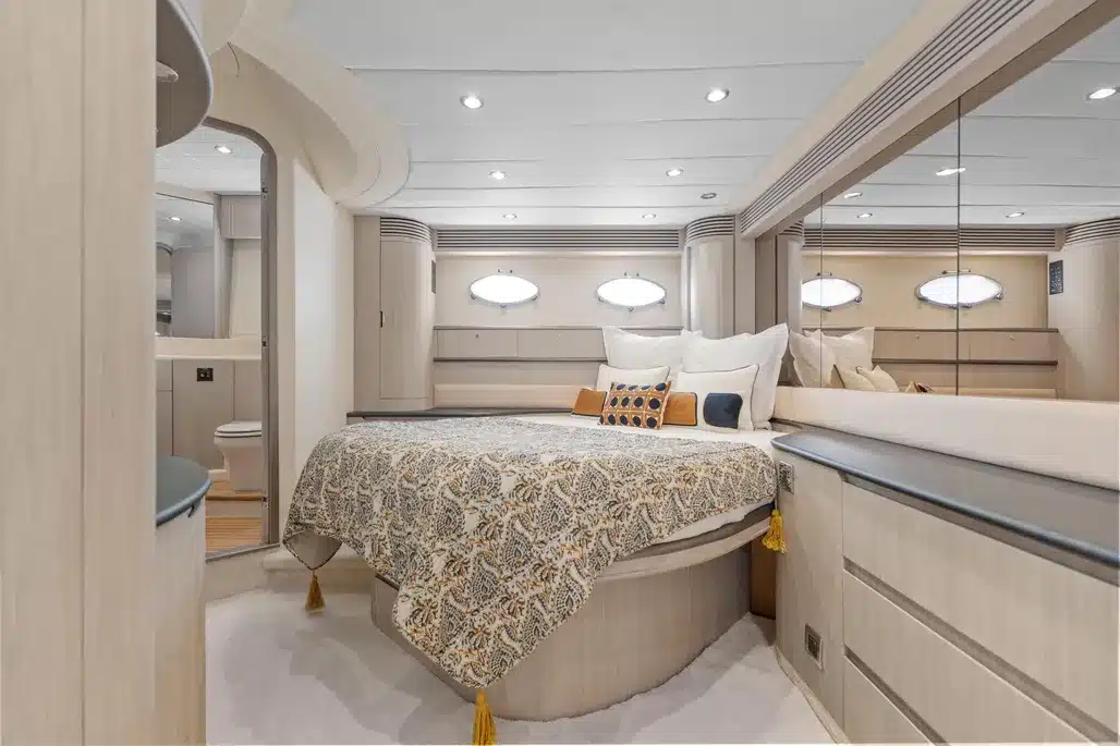 Ce Princess V65 Open, intégralement rénové en 2025, représente une opportunité rare sur la Côte d’Azur pour les amateurs de yachts sportifs et spacieux.